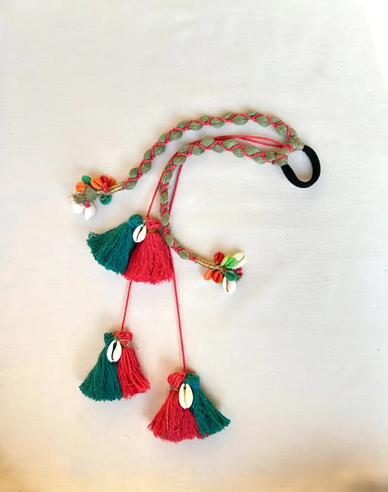 Boho Ombre Cowrie Shell Hair Tie – Hand-Braided Tassel Extension