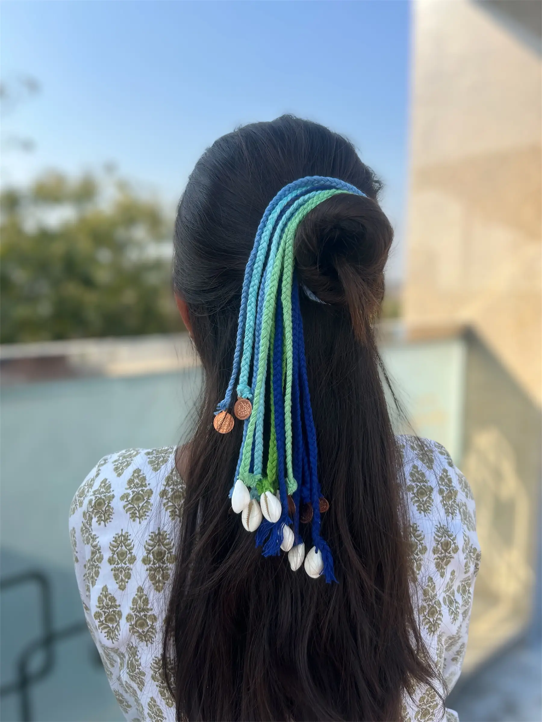 Blue shaded Braids: Featuring a blend of vibrant hues, these braids are perfect for creating a peacock colour inspired hairstyle.
